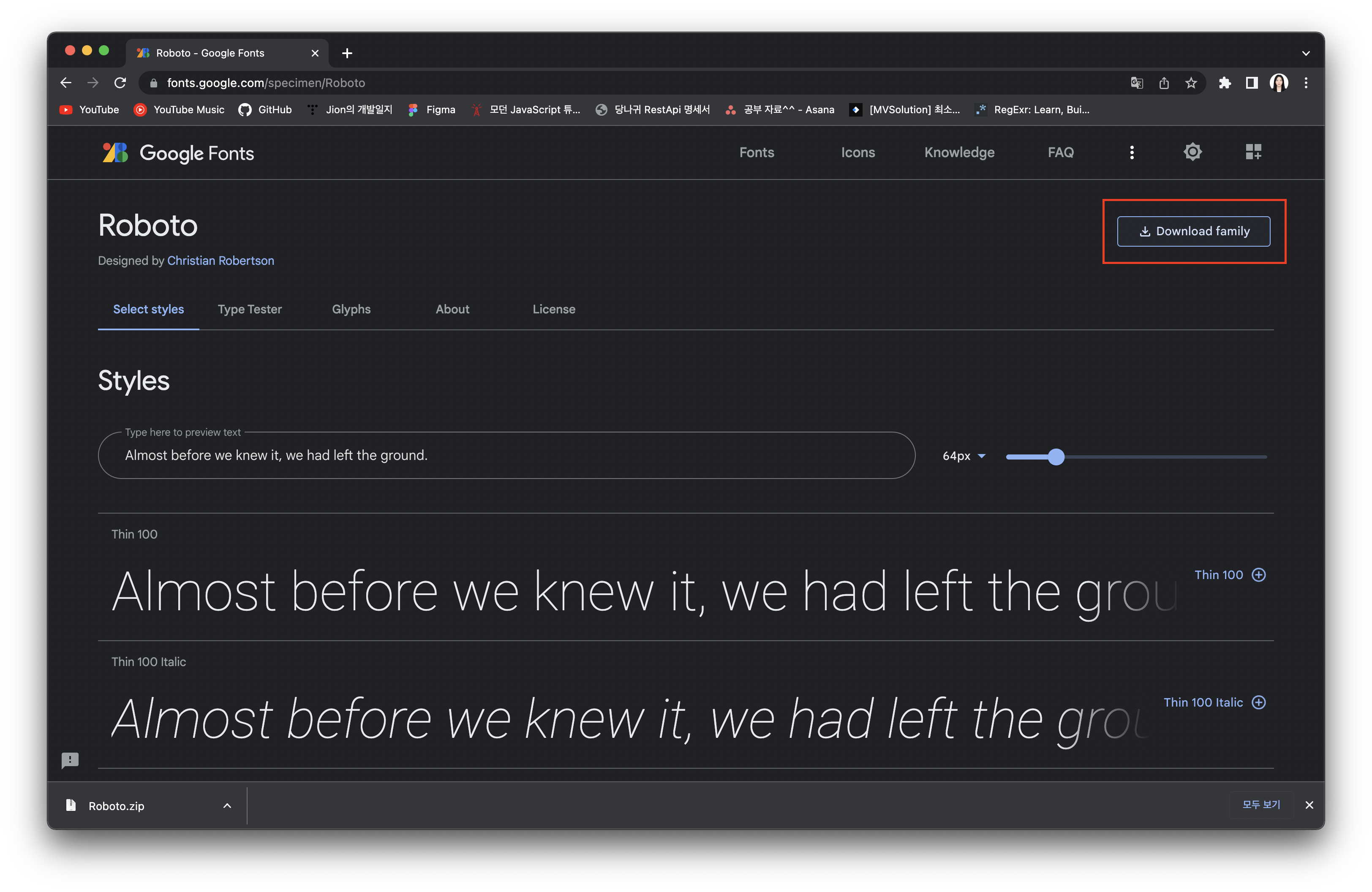 원하는 폰트로 들어가 Download family를 클릭합니다.