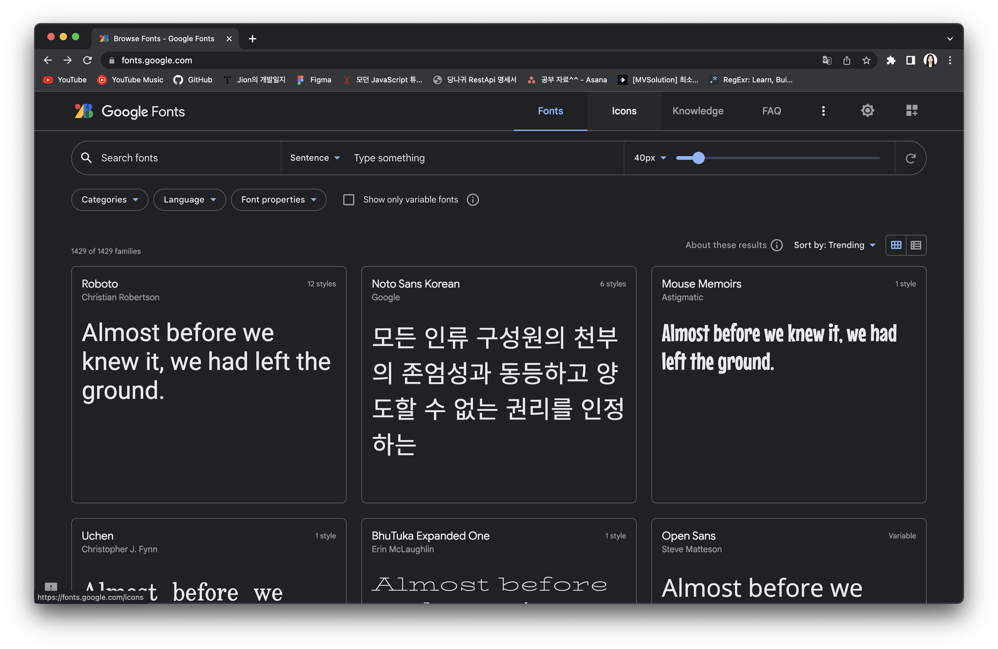 폰트 다운을 위해 https://fonts.google.com/ 에 접속합니다.