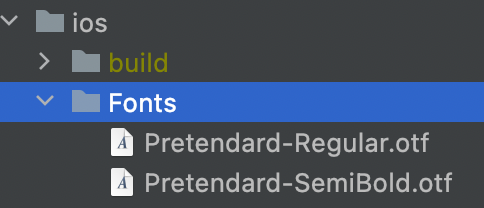 ios/Fonts 폴더를 만든 후, 다운로드 받은 폰트 파일을 그 안에 복사합니다.