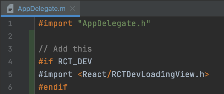 ./ios/AppName/AppDelegate.m. 파일 내에 #import "AppDelegate.h". 문 바로 뒤에 다음을 추가한다.