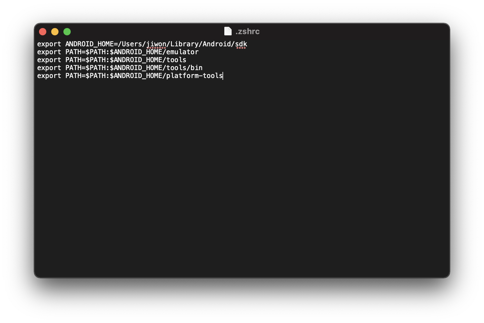 export ANDROID_HOME=복사한 자신의 안드로이드 SDK 위치