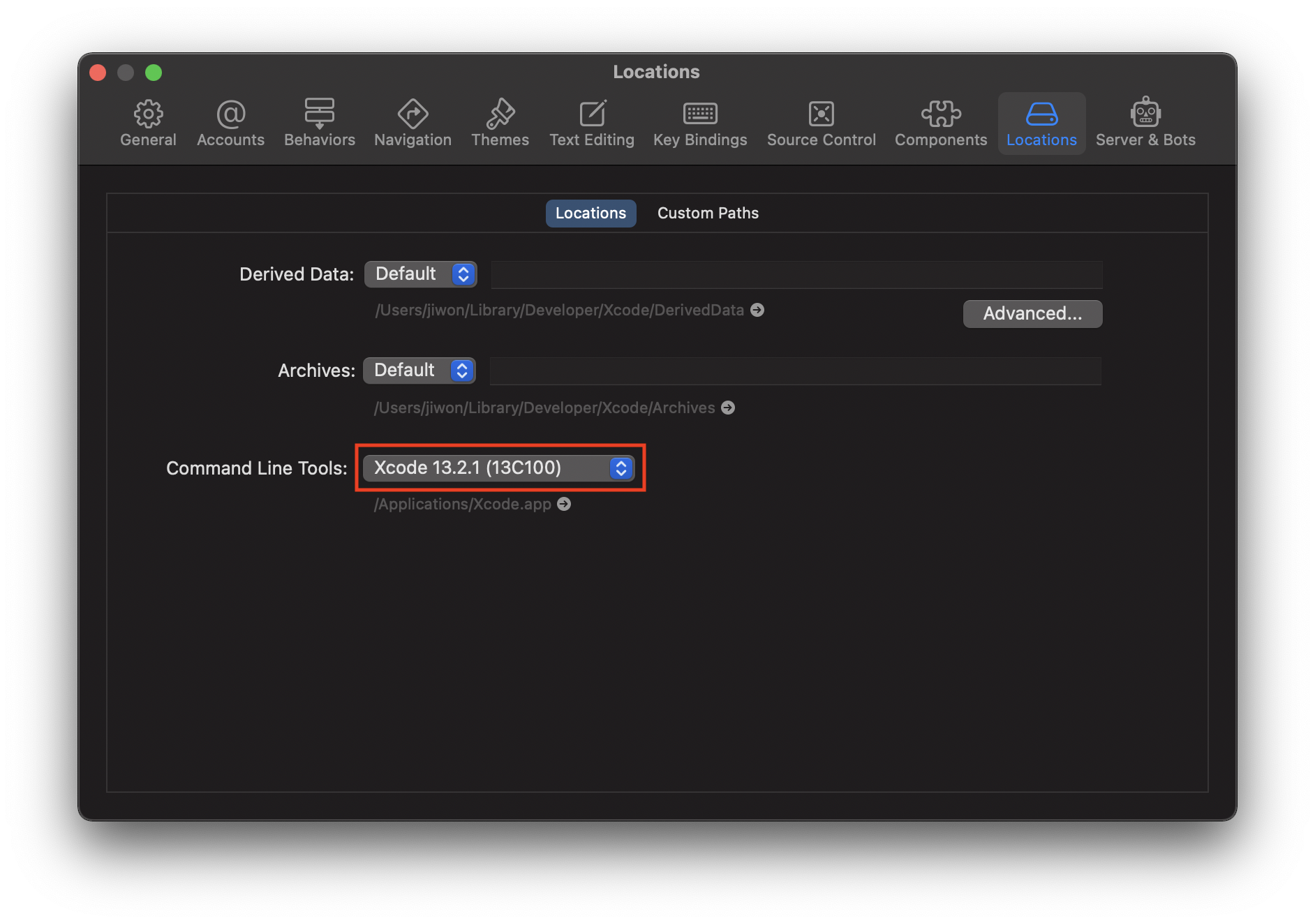 Xcode 설치가 완료되면, Command Line Tools를 설정해야 합니다.